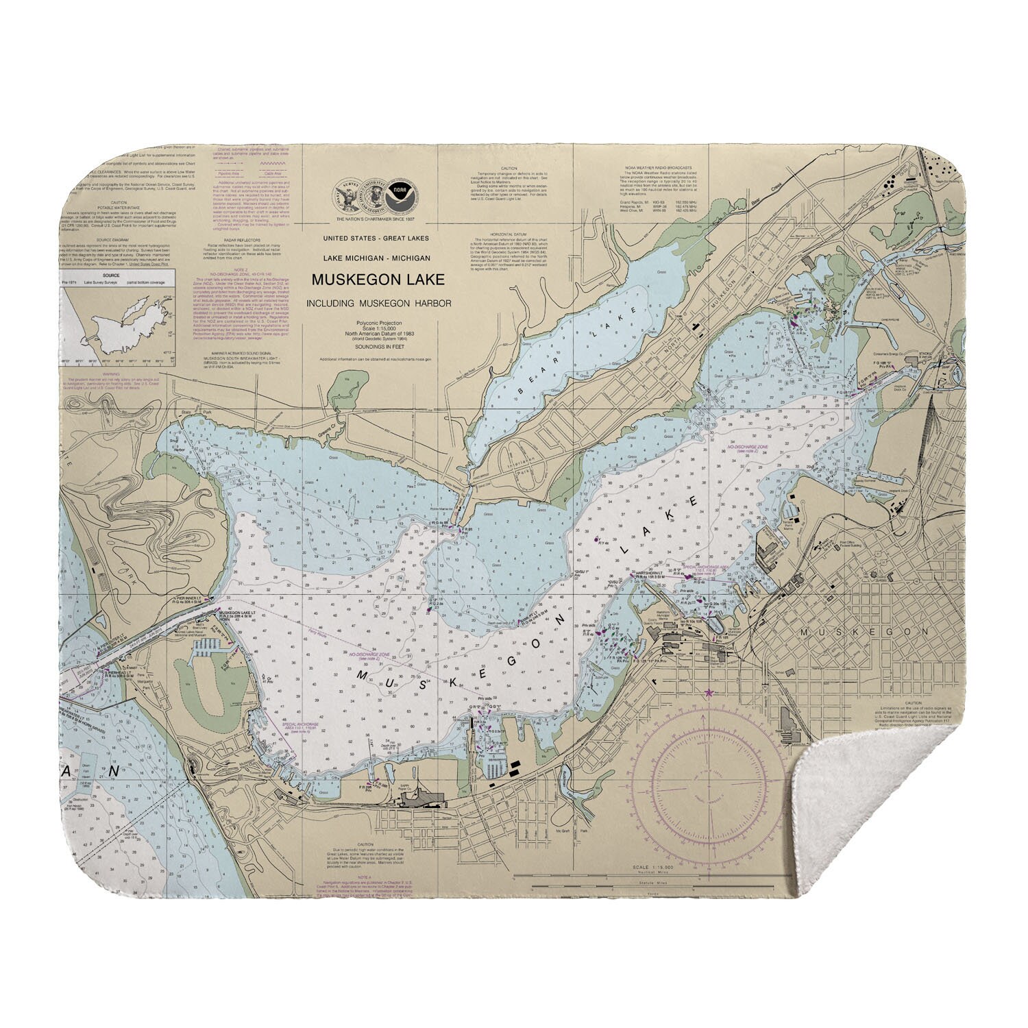 Mi Muskegon Lake Mi Nautical Chart Throw Blanket Made To Etsy